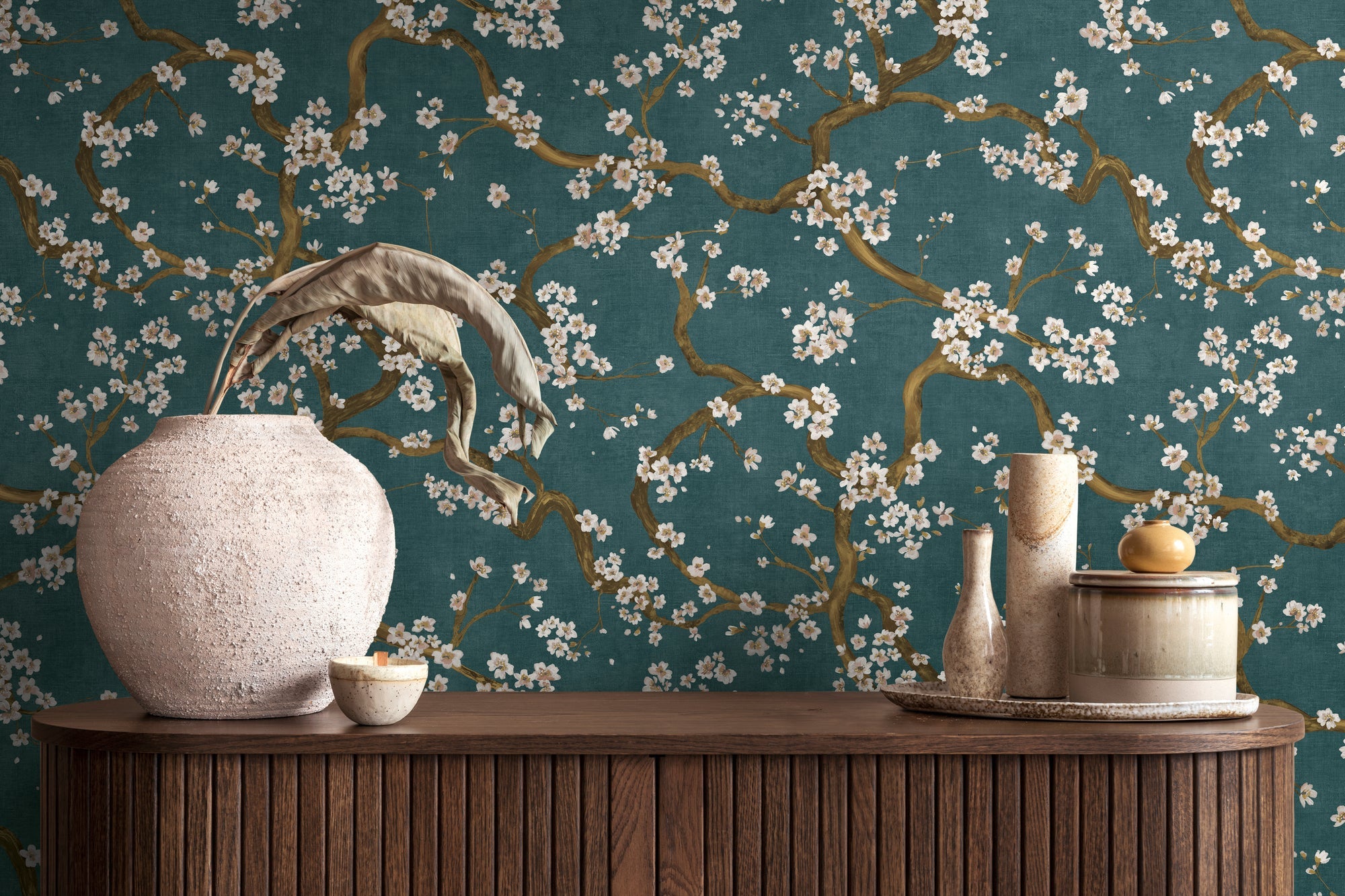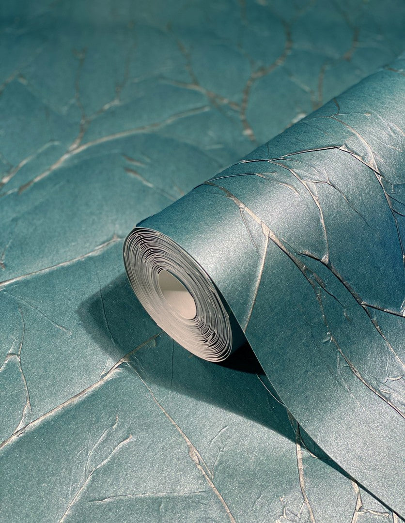 Teal Blue Linen Texture Vinyl Wallpaper – Modern Fabric Look Wall Covering