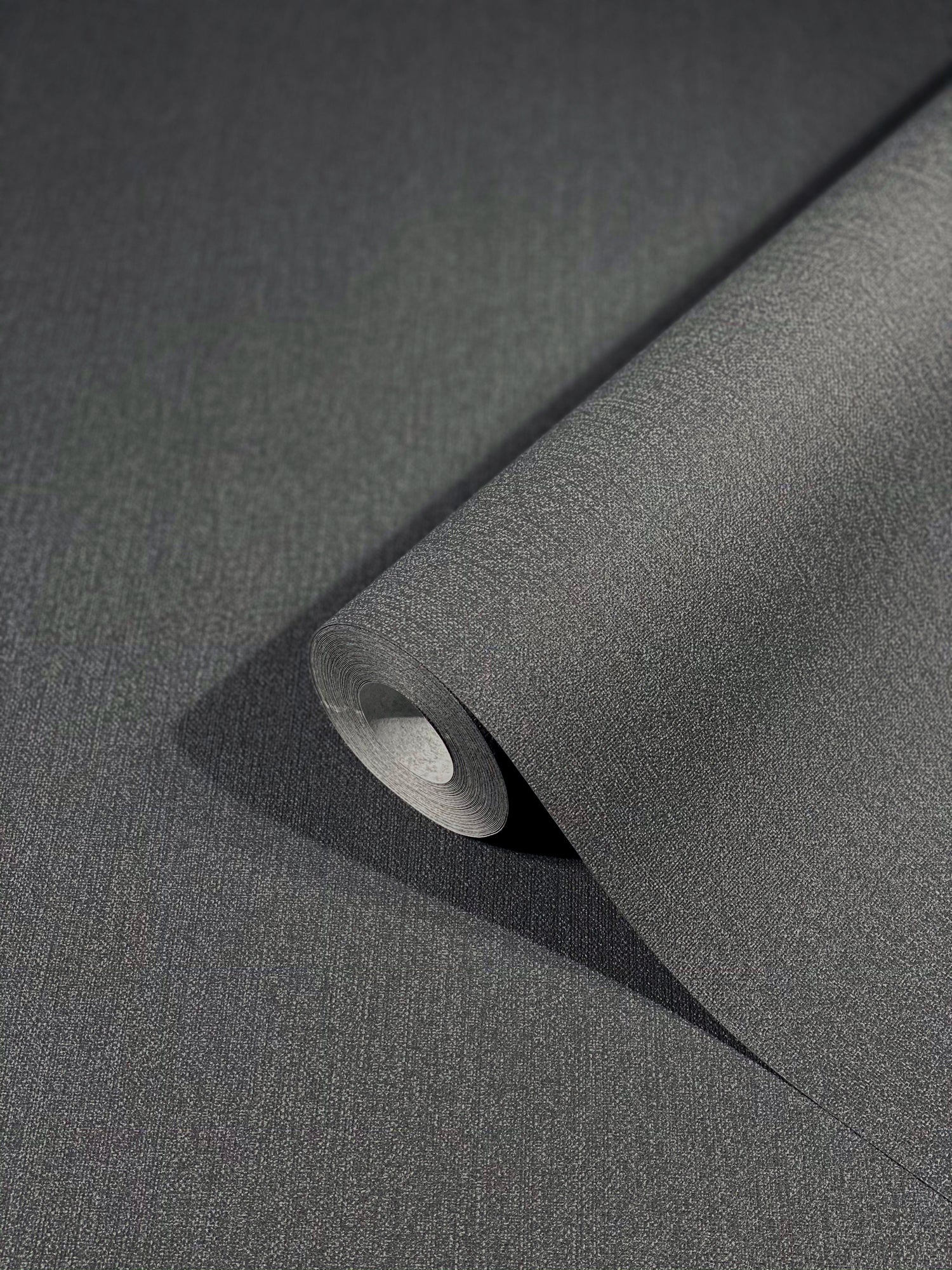 Bold and sophisticated, this dark charcoal wallpaper features a subtle linen texture perfect for contemporary interiors. A sleek and durable choice for accent walls or full-room coverage.